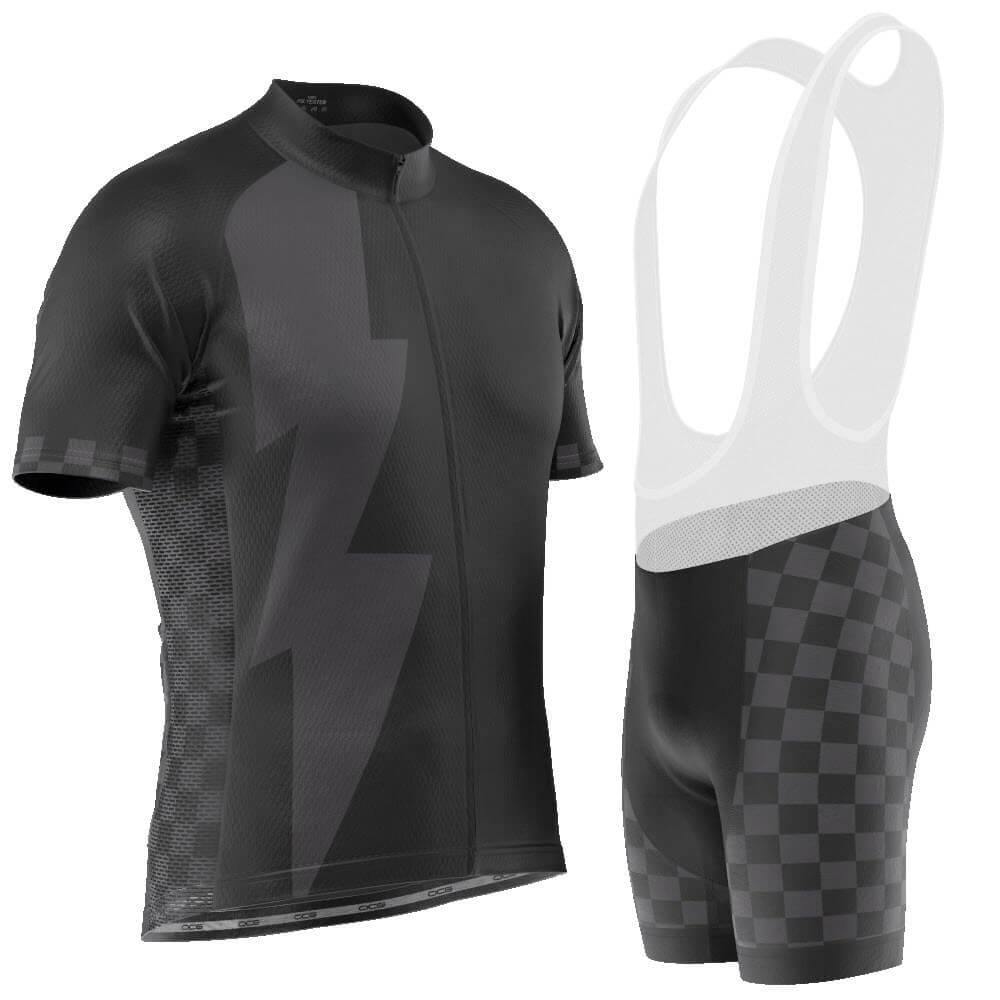 Men's Black Lightning Checkered Cycling Kit Features