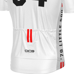 Inspired by the plain white T-Shirt of Dave, Cyril, Moocher, and Mike from the classic 1979 cycling movie Breaking Away, this jersey draws from that simple design and ads a splash of Dave's red-striped helmet to the mix.