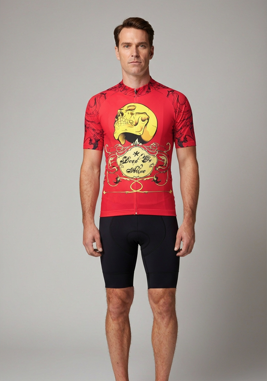 Men's Dead or Alive Red Skull Cycling Jersey Features