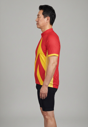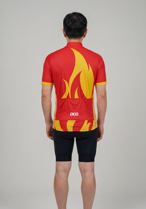 When you buy the Men's Elements Fire Short Sleeve Cycling Jersey at OCG you know you will be getting a unique design on a comfortable, moisture-wicking jersey that feels soft on the body.