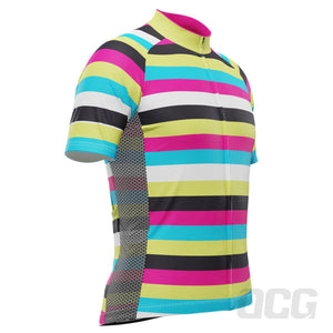 Men's High Viz Rainbow Stripes Cycling Jersey Features