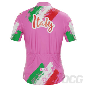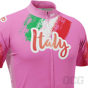 Inspired by the jersey that marked the 100th year of the Giro d'Italia in 2017, this Italy 100 Years Pink Cycling Jersey brings a high visibility pink design with Italian flag colors.