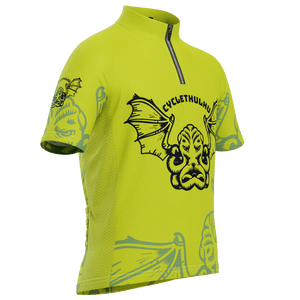 All Cyclethulhu jerseys feature a quarter-zip to avoid unwanted zipper accidents and allow our mini-cyclists to wear their favorite designs on and off the bike.