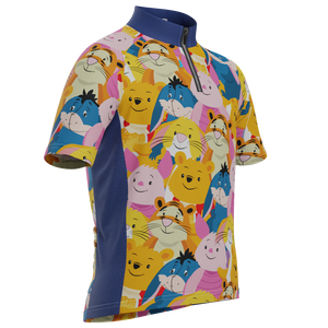 Kid's Winnie The Pooh Characters Mashup Short Sleeve Cycling Jersey