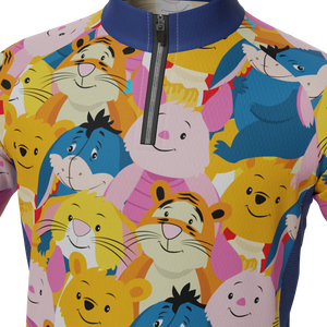All Winnie The Pooh Characters Mashup jerseys feature a quarter-zip to avoid unwanted zipper accidents and allow our mini-cyclists to wear their favorite designs on and off the bike.