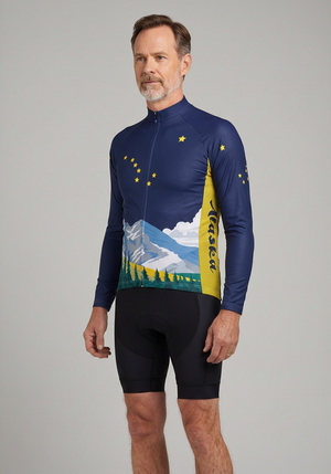 Whether you want to not feel the bite of the winter chill, or you just need some extra protection with a light-weight long-sleeve jersey, this Men's Alaska Flag Long Sleeve Cycling Jersey will do the trick.