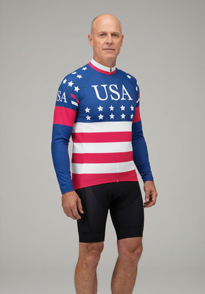 Men's American Stars and Stripes USA Icon Long Sleeve Cycling Jersey