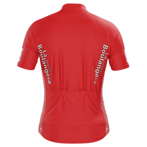 The Men's Baker Short Sleeve Cycling Jersey features a moisture-wicking LEMBO 140 GSM polyester, cooling 110GSM mesh side panels, and reinforced stitched back pockets.