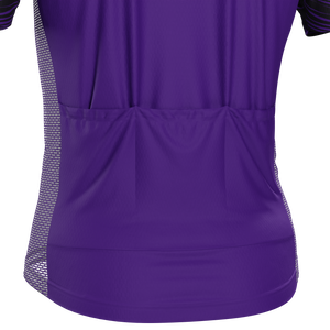The Men's Baltimore Football Short Sleeve Cycling Jersey features a moisture-wicking LEMBO 140 GSM polyester, cooling 110GSM mesh side panels, and reinforced stitched back pockets.