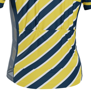 The Men's Banque Retro Short Sleeve Cycling Jersey features a moisture-wicking LEMBO 140 GSM polyester, cooling 110GSM mesh side panels, and reinforced stitched back pockets.