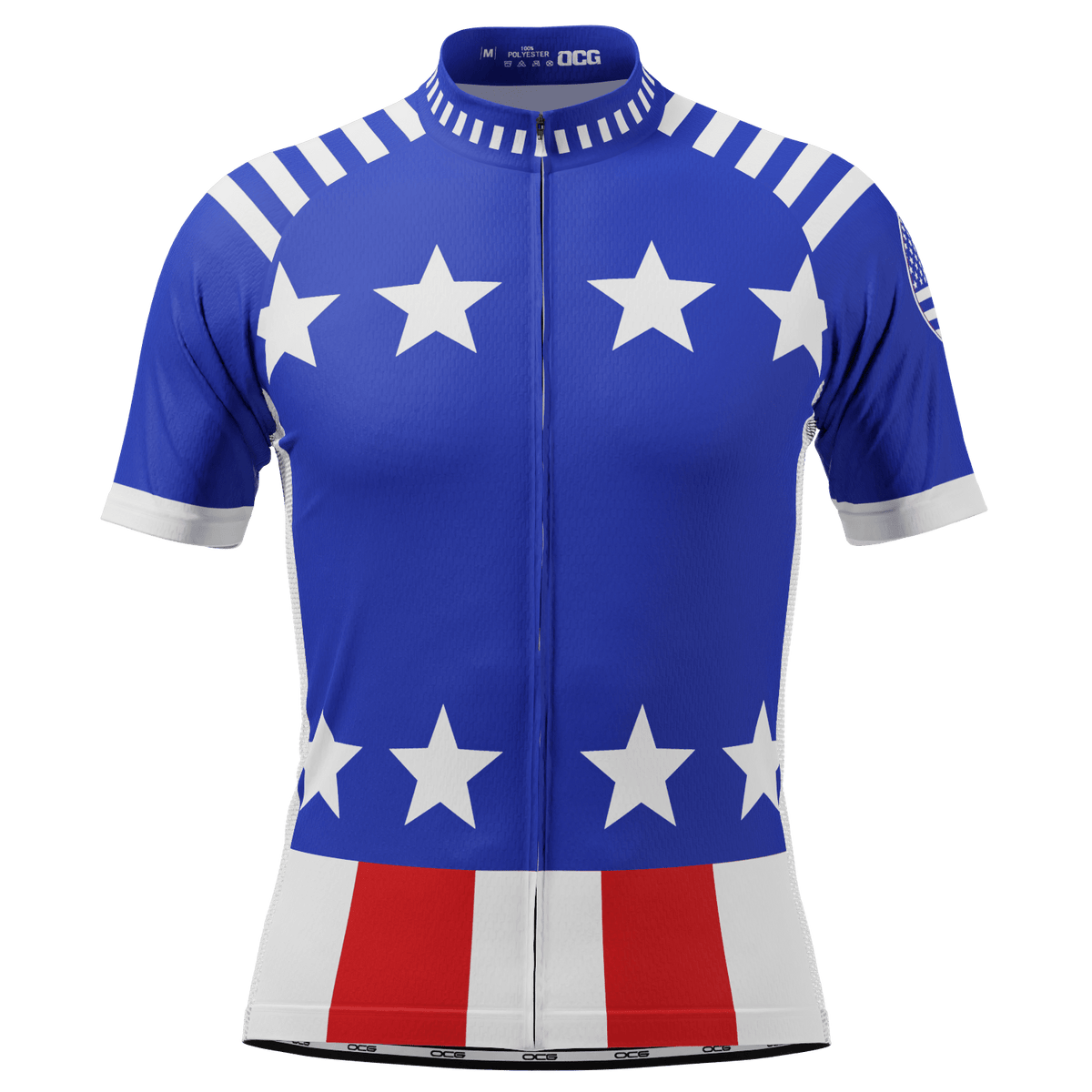 OCG presents the Men's Blue Americas Short Sleeve Cycling Jersey so you can roll up to your next ride with confidence and style.