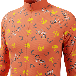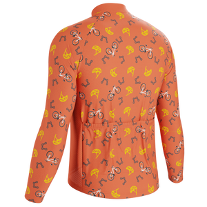 OCG presents the Men's Custom Bike & Helmets Design Personalized Long Sleeve Cycling Jersey to keep you warm and protected on your next ride.