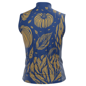 The Men's Fall Pumpkins Sleeveless Cycling Jersey features a moisture-wicking LEMBO 140 GSM polyester, cooling 110GSM mesh side panels, and reinforced stitched back pockets.