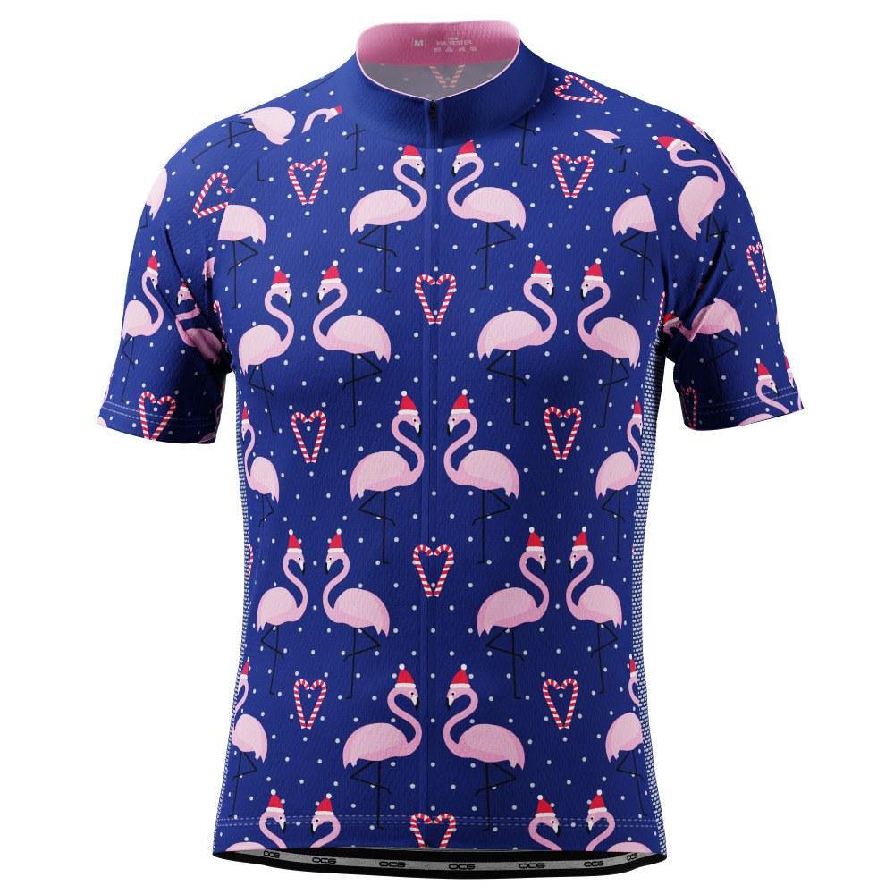Men's Flamingo Santa Short Sleeve Cycling Jersey Details