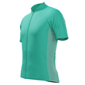 The Men's Forest Matte Colors Short Sleeve Cycling Jersey features a moisture-wicking LEMBO 140 GSM polyester, cooling 110GSM mesh side panels, and reinforced stitched back pockets.