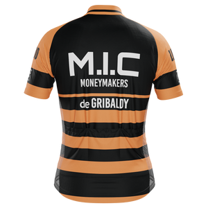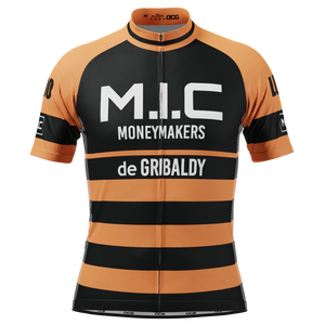 The Men's Gribaldy Retro Short Sleeve Cycling Jersey features a moisture-wicking LEMBO 140 GSM polyester, cooling 110GSM mesh side panels, and reinforced stitched back pockets.