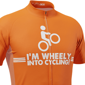 OCG and OCG Originals have come together to bring the Men's I'm Wheely Into Cycling! Short Sleeve Cycling Jersey so you can roll up to your next ride with confidence and style.