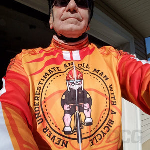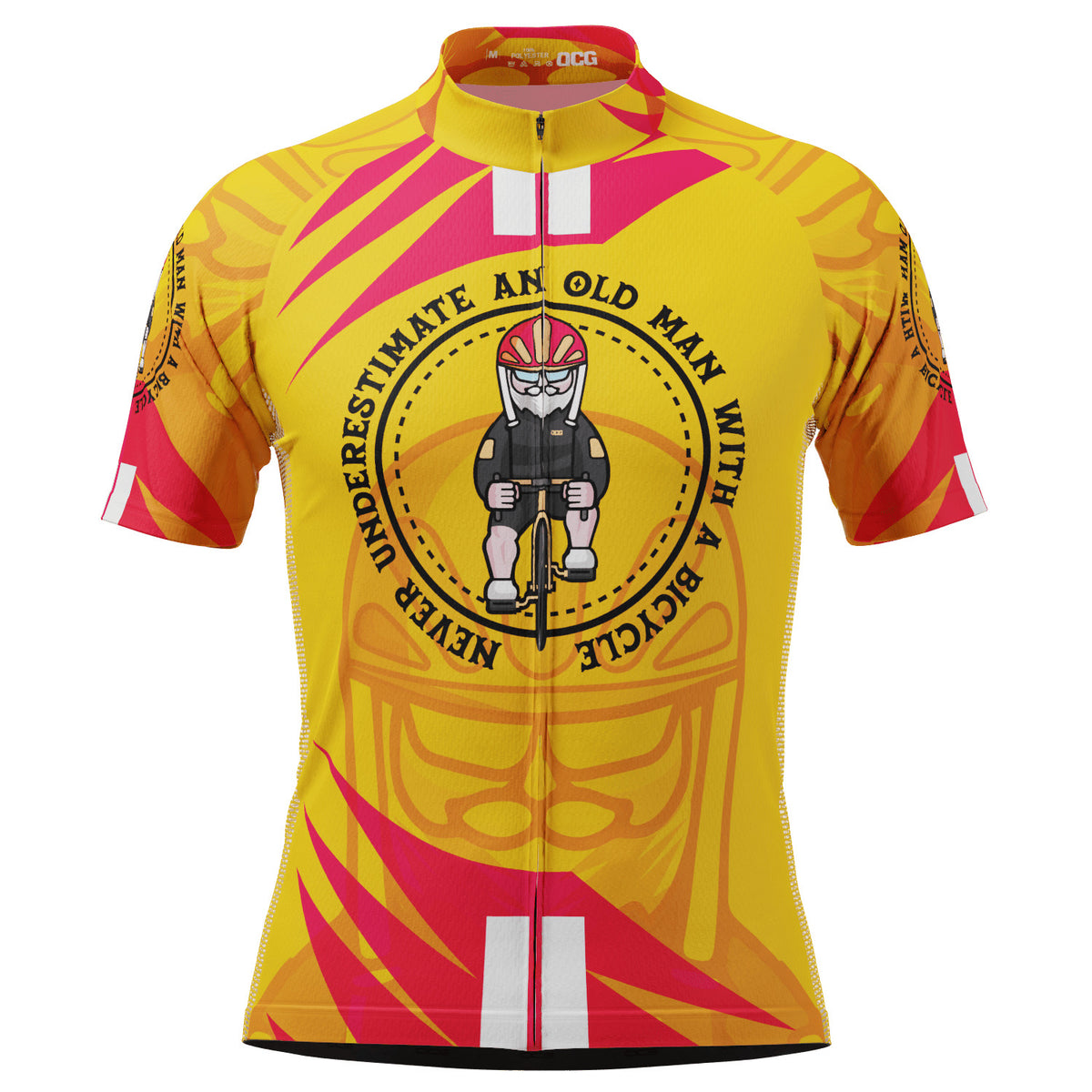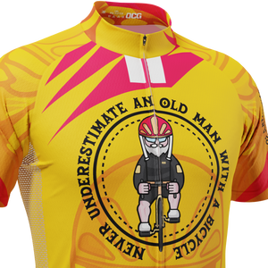 OCG and OCG Originals have come together to bring the Men's Never Underestimate Old Man Bicycle Short Sleeve Cycling Jersey so you can roll up to your next ride with confidence and style.