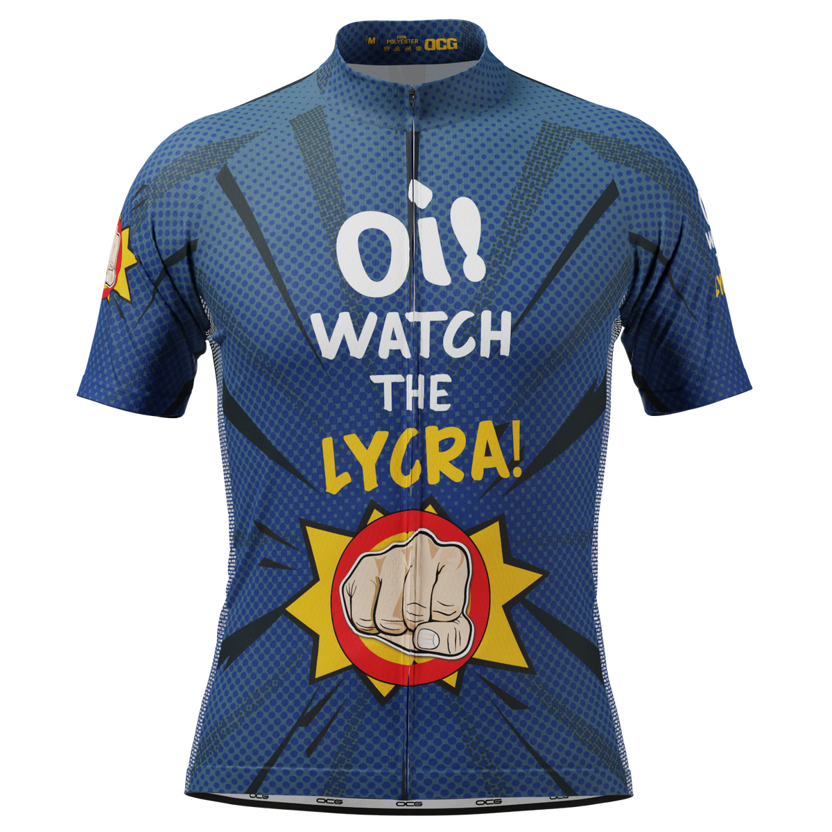 Men's Oi! Watch the Lycra! Short Sleeve Cycling Jersey Details