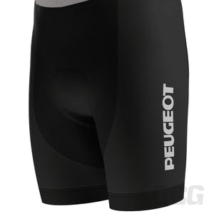 The Men's Peugeot BP Michelin Retro Classic Short Sleeve Cycling Kit features a moisture-wicking LEMBO 140 GSM polyester jersey body, cooling 110GSM mesh side panels, and reinforced stitched back pockets.