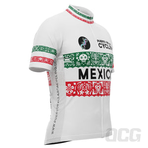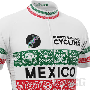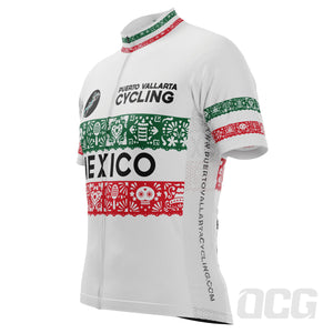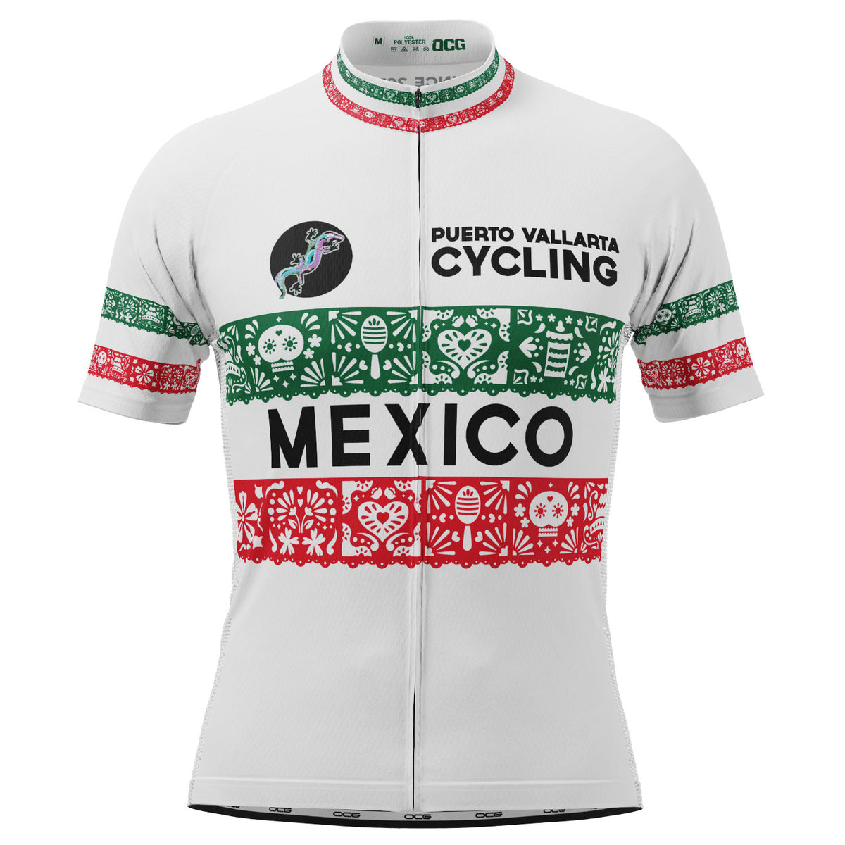 The Men's Puerto Vallarta Cycling 2022 Short Sleeve Cycling Jersey features a moisture-wicking LEMBO 140 GSM polyester, cooling 110GSM mesh side panels, and reinforced stitched back pockets.