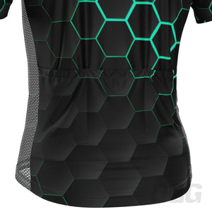 The Men's Radioactive Short Sleeve Cycling Kit features a moisture-wicking LEMBO 140 GSM polyester jersey body, cooling 110GSM mesh side panels, and reinforced stitched back pockets.