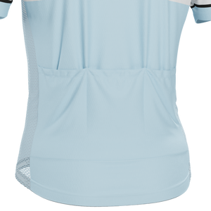 The Men's Retro Bianchi Short Sleeve Cycling Jersey features a moisture-wicking LEMBO 140 GSM polyester, cooling 110GSM mesh side panels, and reinforced stitched back pockets.