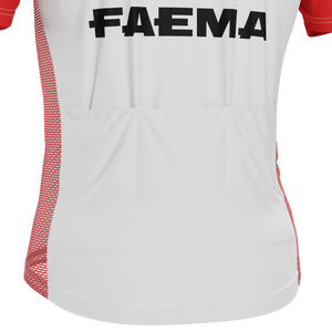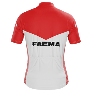 The Men's Retro Espresso Short Sleeve Cycling Jersey features a moisture-wicking LEMBO 140 GSM polyester, cooling 110GSM mesh side panels, and reinforced stitched back pockets.