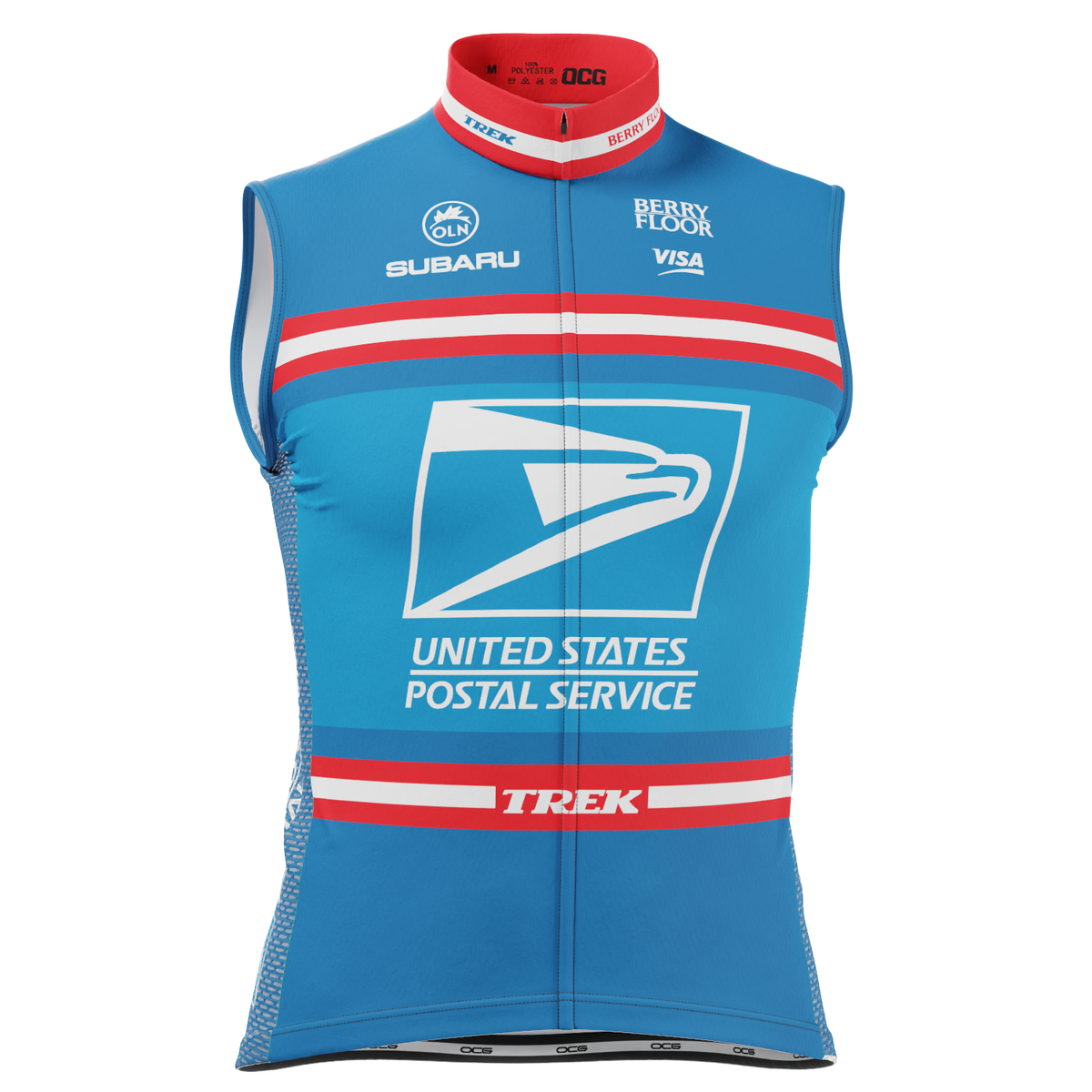 OCG presents the Men's Retro US Postal Sleeveless Cycling Jersey so you can roll up to your next ride with confidence and style.