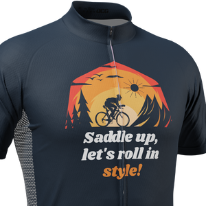 Men's Saddle Up, Let's Roll In Style! Short Sleeve Cycling Jersey Details