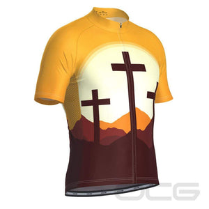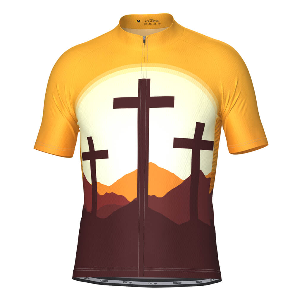 Men's Three Cross Christian Faith Short Sleeve Cycling Jersey