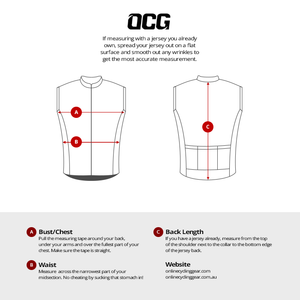 Washing instruction icons are printed on the inside of the collar of all OCG jerseys. Following these instructions will maximize the life of your OCG gear.