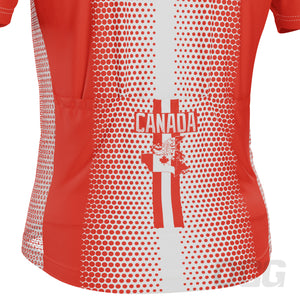 The Men's World Countries Flag Canada Short Sleeve Cycling Jersey features a moisture-wicking LEMBO 140 GSM polyester, cooling 110GSM mesh side panels, and reinforced stitched back pockets.