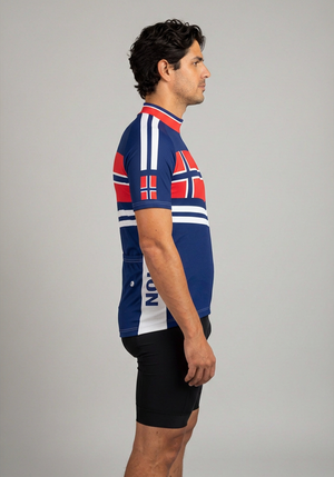 When you buy the Men's Norway Norge Flag Short Sleeve Cycling Jersey at OCG you know you will be getting a unique design on a comfortable, moisture-wicking jersey that feels soft on the body.
