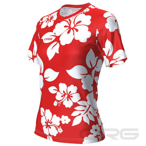 Women's Hawaiian Aloha Floral Short Sleeve Running Shirt