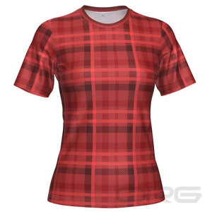 Women's Plaid Tartan Short Sleeve Running Shirt