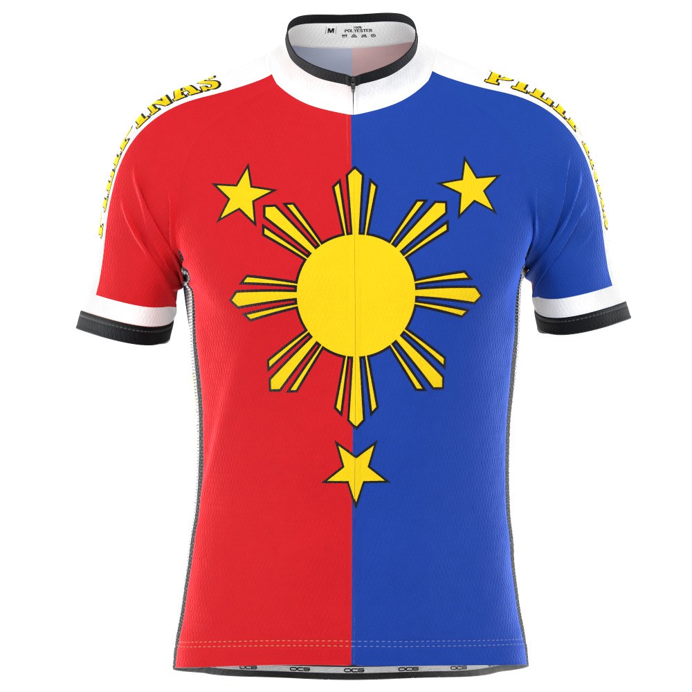 Featuring the Philippines flag, this Men's Pilipinas Philippines Flag Short Sleeve Cycling Jersey lets you feel a little patriotic while riding in a unique design on a comfortable, moisture-wicking jersey that feels soft on the body.
