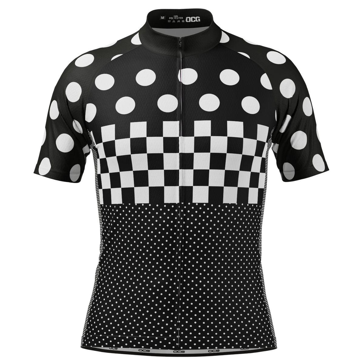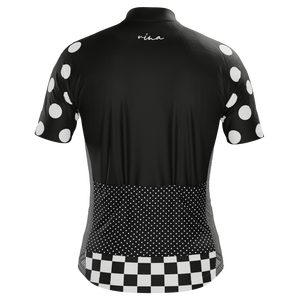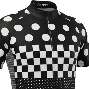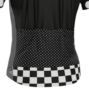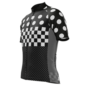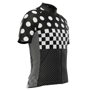 This Polka Dot Checkered Flag Cycling Jersey is made from high-quality Quick-Dry breathable fabric with a hidden full-length zip and three reinforced back pockets.