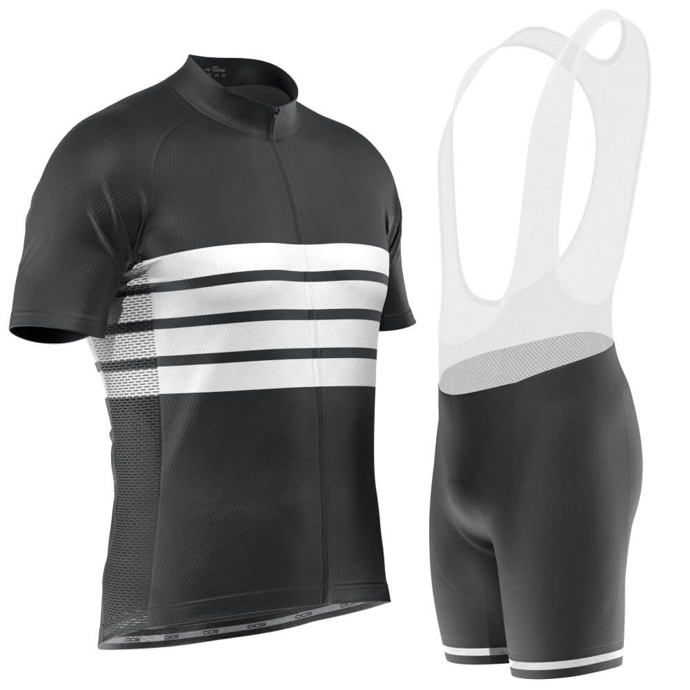 Keep it classy with this exclusive Men's Retro Four Stripe Men's Black Cycling Kit.