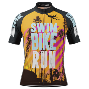 Men's Swim Bike Run Hot Summer Short Sleeve Cycling Jersey