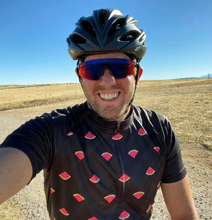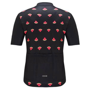 The cycling jersey from this Watermelon Black Bib Cycling Kit is made from high-quality Quick-Dry breathable fabric with a hidden full-length zip and three reinforced back pockets.