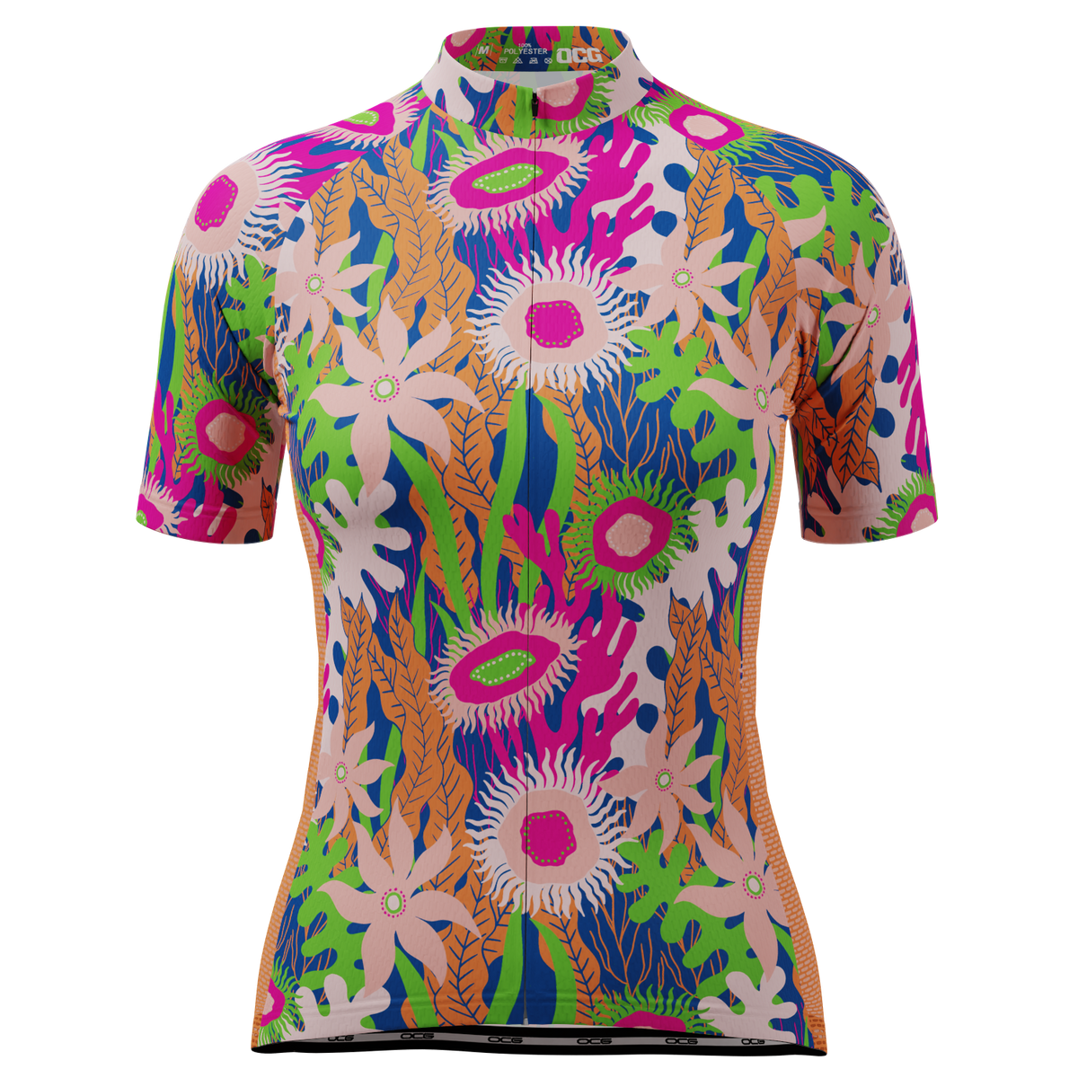 OCG and OCG Originals have come together to bring the Women's Aquatic Plantlife Short Sleeve Cycling Jersey so you can roll up to your next ride in style and feel the comfort of a female cut jersey.