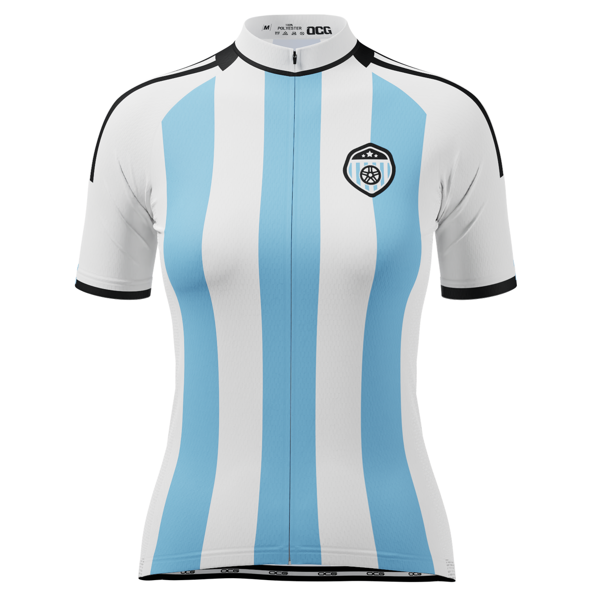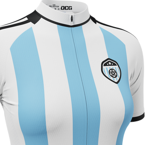 OCG presents the Women's Argentina Soccer Short Sleeve Cycling Jersey so you can roll up to your next ride in style and feel the comfort of a female cut jersey.