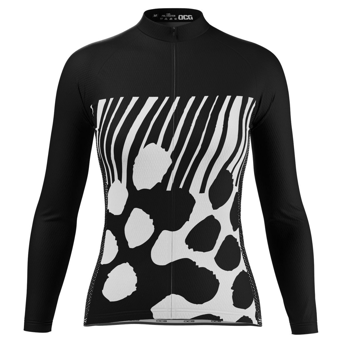 OCG and have come together to bring the Women's Big Leopard Spots & Stripes Long Sleeve Cycling Jersey to keep you warm and protected on your next ride.