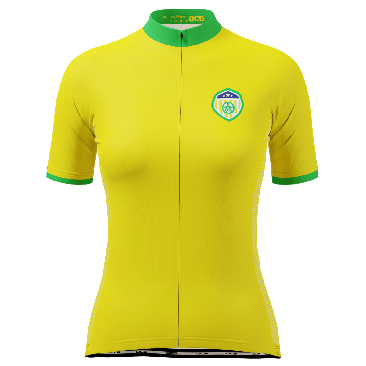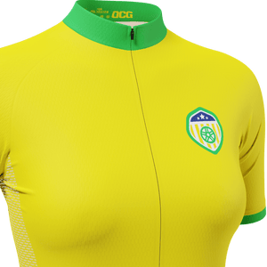 OCG presents the Women's Brazil Soccer Short Sleeve Cycling Jersey so you can roll up to your next ride in style and feel the comfort of a female cut jersey.