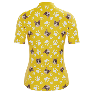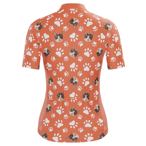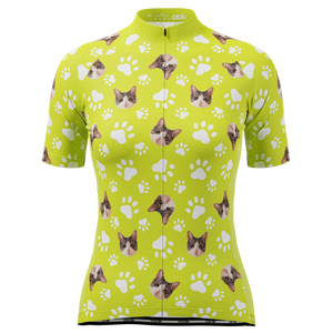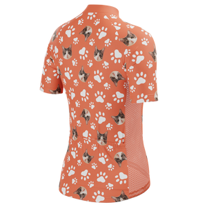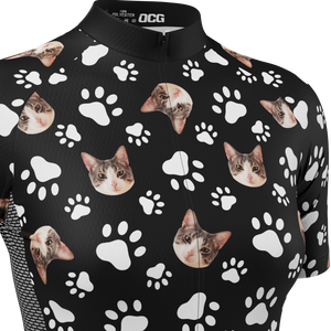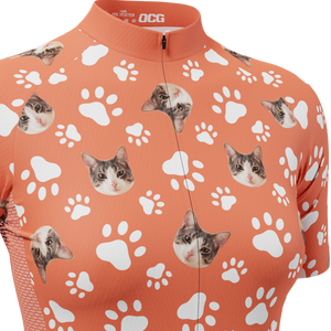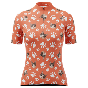 OCG presents the Women's Custom Pet Paws Design Personalized Short Sleeve Cycling Jersey so you can roll up to your next ride in style and feel the comfort of a female cut jersey.