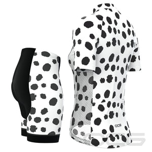 OCG and OCG Originals have come together to bring the Women's Dalmatian Dog Short Sleeve Cycling Kit for you to ride in style and feel the comfort of a female cut cycling kit.