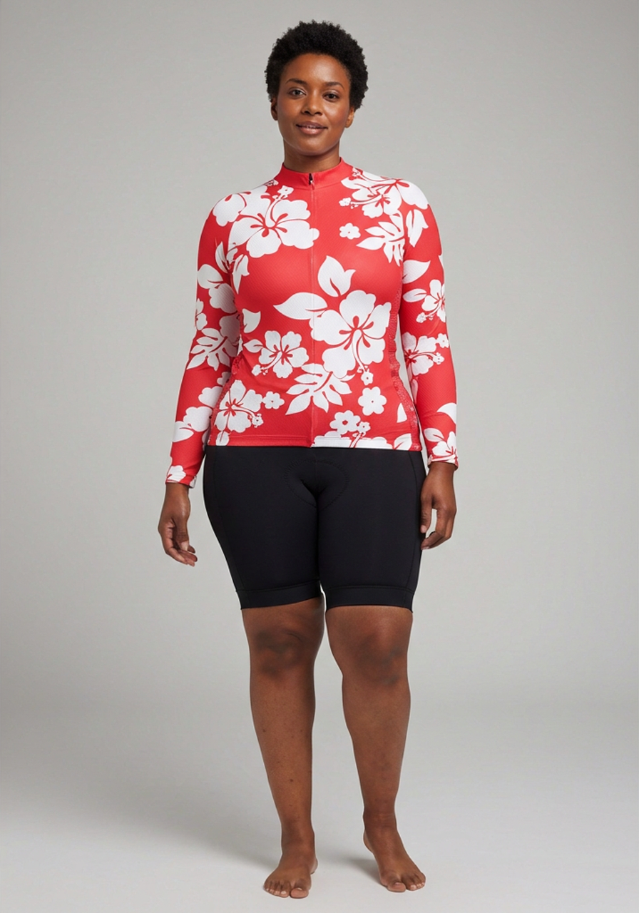 OCG and have come together to bring the Women's Hawaiian Aloha Floral Long Sleeve Cycling Jersey to keep you warm and protected on your next ride.