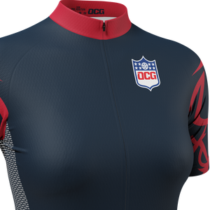 OCG presents the Women's Houston Football Short Sleeve Cycling Jersey so you can roll up to your next ride in style and feel the comfort of a female cut jersey.