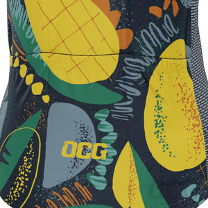 OCG Originals brings the fun fruit-themed Women's Mango Fruit Indulgence Short Sleeve Cycling Jersey so you can roll up to your next ride in style and feel the comfort of a female cut jersey.